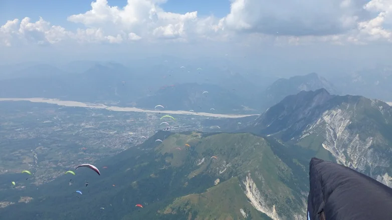 Тази година внимателно избраното слънчево местенце беше италианският град Джемона дел Фриули. Сгушеното между Венеция, Австрия и Словения градче (локацията не звучи зле, нали?) предложи всичко – от стръмни планини до равнини с доста добри термики. Имахме три много хубави задачи, изискващи полети от планините до равнините и обратно, и въпреки че дължината и трудността на задачите беше съобразена с любяща грижа за многото позагубили форма северняци, които не бяха летяли много през дългата нордическа зима, мога да кажа, че всички си изкараха супер.