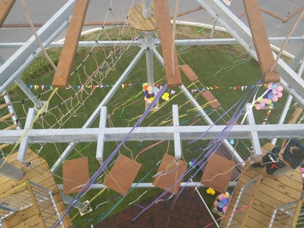 Преживяването на SkyHiker Jumbo включва приятелско посрещане от екипа инструктори и разяснения на различните нива и елементи. Мерят ни да сме високи над 120 см и да сме по-леки от 110 кг. Да, така е, значи ни осигуряват и ни изпращат с въжето нагоре по стълбите към въжените и дървените мостове, които висят на седем метра над земята, клатят се, карат коленете ти да затреперят, но предлагат гледка към планините и чиста проба адреналин. Нивото се казва „Лисица“ и се обхожда сравнително лесно, много е вълнуващо и е напълно безопасно, обаче чувствам как сърдечният ми ритъм се ускорява и на някои препятствия блокирам. Концентрирам се, гледам напред, внимавам за центъра на тежестта си и продължавам с въздишка на облекчение.