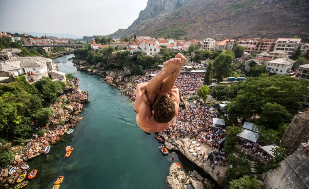 Горещ ден и разгорещена надпревара имаше в Мостар на 15 август, където се проведе първото за Босна и Херцеговина издание на сериите по височинни скокове във вода Red Bull Cliff Diving.