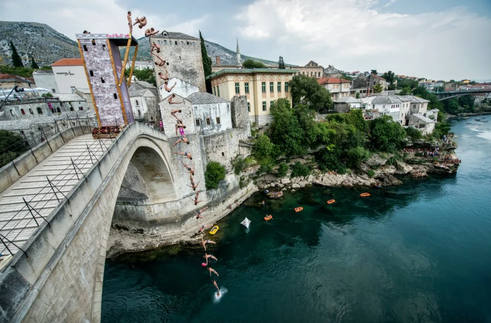 Мястото, което Ред Бул избра за провеждане на този етап от Cliff Diving сериите, има история в скоковете отп очти 450 години. Стари Мост е най-известната забележителност в Босна и Херцеговина. Първите скокове от него датират от 1664, а първата надпревара от 1968 г. Легендарната постройка е място, където млади мъже от Мостар доказват смелостта си в нещо като тест за зрелост и традицията за състезания по скокове.