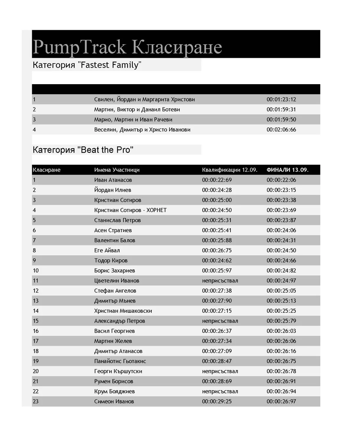 Събитието, организирано от 360˚ и София Ринг Мол, включваше не една, а две отделни състезателни игри. В първата се включиха над 50 състезатели, които трябваше да подобряват времето, постигнато от Стивиан Гатев – шампион в дисциплината спускане и един от най-прогресивните български МТБ състезатели в момента. Играта беше кръстена „Победи шампиона“ (“Beat the Pro”), а колелото, с което се състезава шампиона, беше с 20-инчови гуми. Въпреки, че се състезаваше с останалите, Стиви им помогна да се представят максимално добре, като им сподели от своите съвети. Другата игра – „Най-бързо семейство“ (“Fastest Bike Family”), не беше индивидуална, а екипна. В нея участваха отбори от по трима участници, в които трябваше да има поне едно дете. Те показаха колко добре могат да карат заедно.