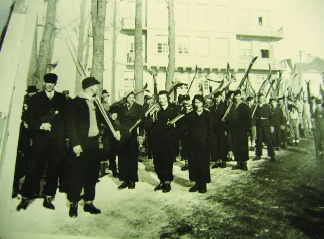 * През 1941 г. в България по покана на БСС пристига австрийския треньор Петер Радахер със задача да предаде на младите скиори модерната алпийска ски техника. Той провежда първата истинска тренировка на самоковските скиори на х. Мусала (използвани са чамови слаломни колове, 1,80-2 м, 4х4, незаоблени, които на хижата са заоблили с ренде по искане на австрийския треньор).