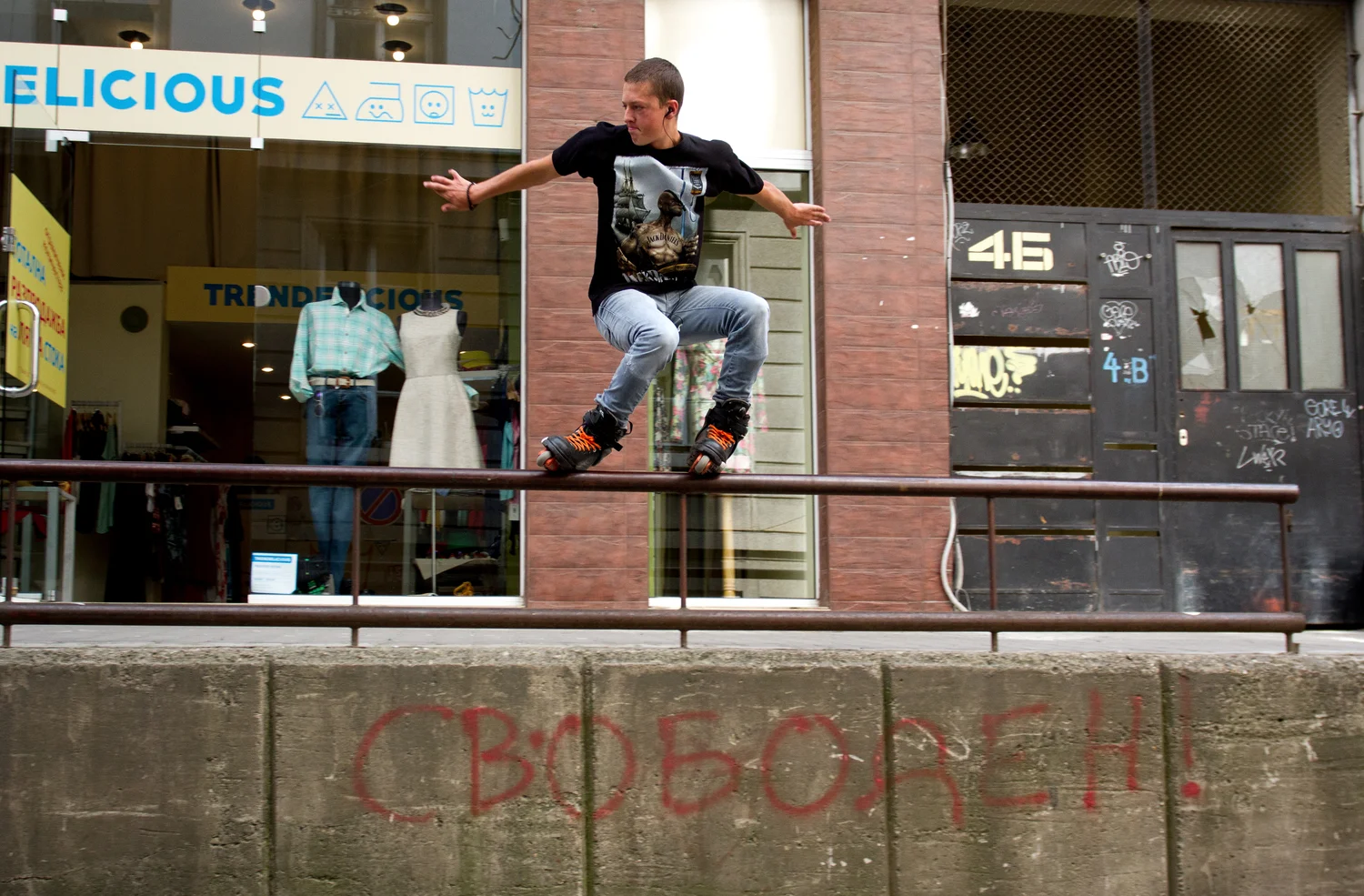 В късен следобед с четирима от най-големите ентусиасти се отправяме към Бизнес парка. Докато се возим в метрото, ги питам от колко време карат. „Малко повече от две години, един приятел ни зариби“, отвръщат двама от най-младите, Любо и Васко, набор ‘98. Любопитно ми е защо са се насочили към кънките, а не към скейтборда? „Кънките ти дават много повече свобода на действие, можеш да правиш много по-луди и сложни трикове трикове с тях.“