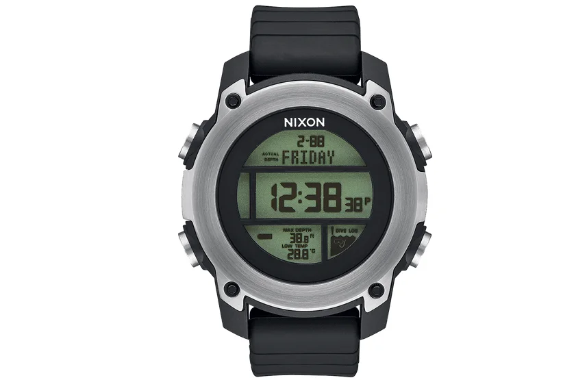NIXON UNIT DIVE е създаден със специални допълнителни функции, активиращи се под вода, след 1,5 метра. Часовникът отчита максималната дълбочина, минималната температура, пълното време на гмуркането и реално достигнатата дълбочина. Освен това дава сигнал (звуков и светлинен), когато гмуркачът се спуска с повече от 10 метра за минута.