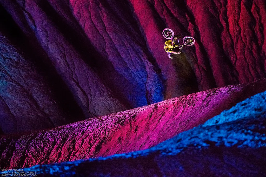 Тази година филммейкърите използват същия подход, за да заснемат маунтин байкърите Греъм Агасиз, Мат Хънтър и Мати Майлс, спускащи се по тъмно, но оставящи след себе си дъга от неонови цветове.