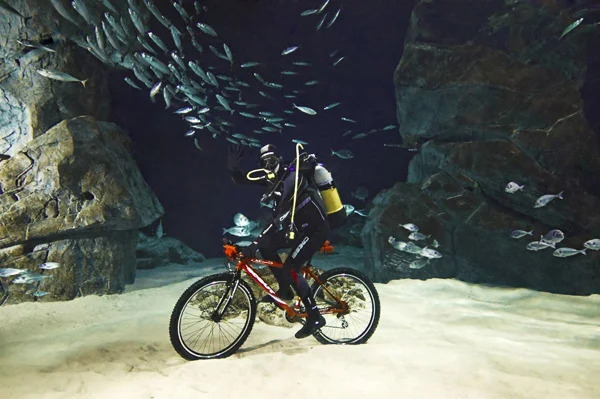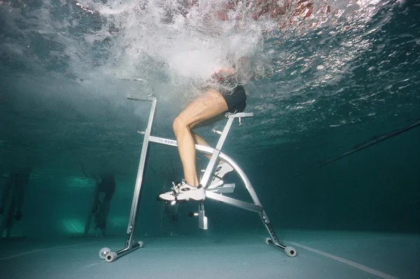 Ник Мобли от Лондонското Водолазно Училище съчетава различни технологии, за да създаде това, което той нарича първото „подводно турбо тренировъчно колело”. Това е колело, което е било специално проектирано да работи в техния водолазен басейн.