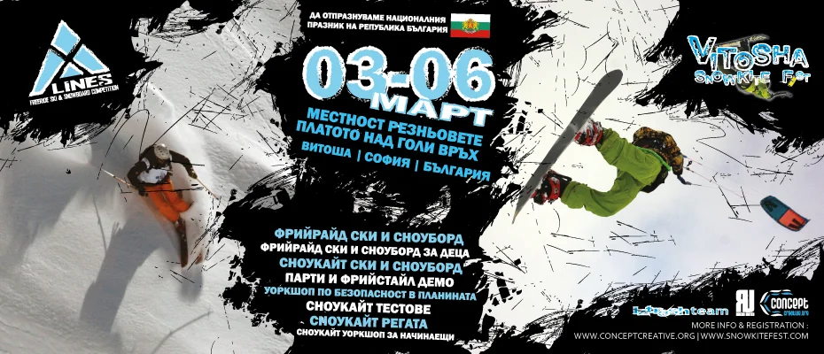 Екстремната фрийрайд надпревара X Lines и Витоша Сноукайт Фест се обединяват, за да превърнат дните около Националния празник и в празнични дни за зимните спортове и активния начин на живот.
