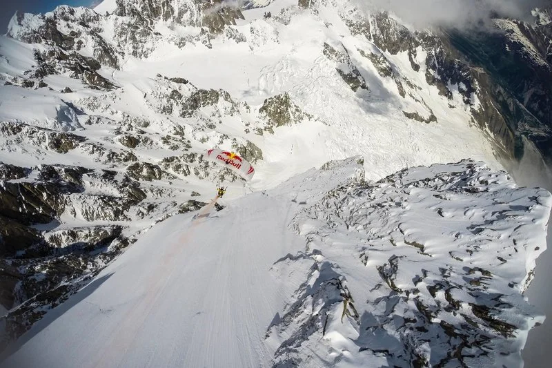 След като скачат от 10 000 м в небето над Монблан, Винсент Рефет и Фред Фюген се „прибират“ с парапланери. Как изглежда въздухът над Монблан ли? Малко по-надолу ще разберем.
