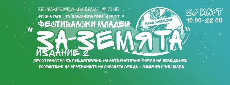 Младежки фестивал „За Земята“ ще се проведе в събота (26-ти март) в Underground gallery/studio на Сточна гара, ул. Владайска река 4, етаж 4.