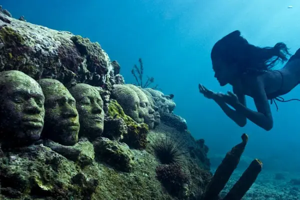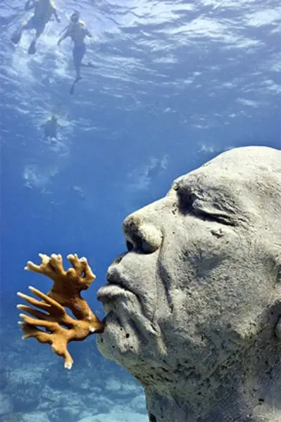 В близост до Канкун, мексиканските власти решиха да осъществят едно уникално начинание – подводен музеен комплекс от 400 бетонни фигури. Музеят „The Cancun and Isla Mujeres” се намира на територията на Националния парк на западното крайбрежие в Кинтан Роо на полуостров Юкатан. Идеята на организаторите е чрез многобройните конструкции да отвлекат вниманието на туристите от кораловите рифове в района, които са силно разрушени – твърде често неопитни плувци закачат коралите или отчупват парчета с плавници, акваланги или просто за спомен. PH-неутралният бетон, от който са изградени фигурите в музея, ще позволи на водораслите и малките животни да се заселят и да развият собствена екосистема. С времето, благодарение на нарастването на морския живот, първоначалният вид на скулптурите ще се изменя и те ще се превърнат в неотменна част от подводния пейзаж. Според организаторите, музеят ще е достатъчно атрактивен, за да привлече интересът на основната маса туристи, което ще спомогне за възстановяването на първоначалното състояние на кораловите рифове.