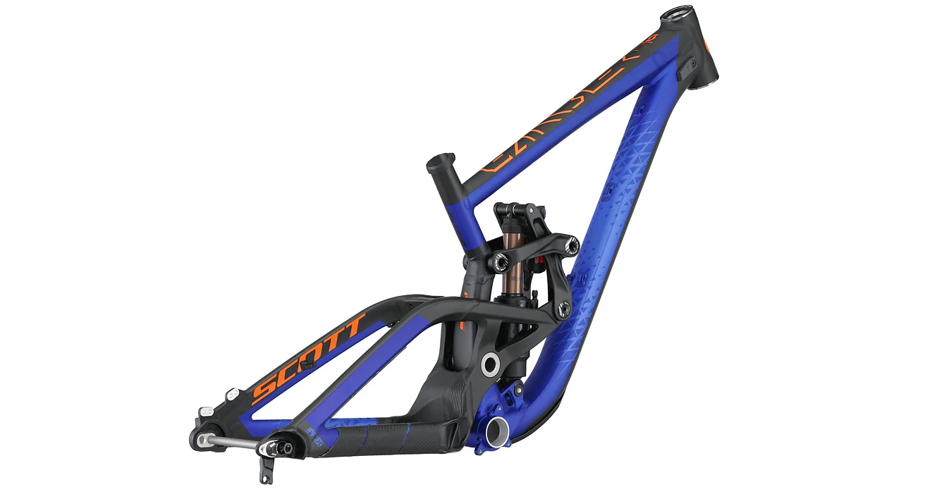 DH моделът на Scott доста се промени в последните години. Почитателите на спускането със сигурност са запознати с него, защото актуалната рамка просто не може да остане незабелязана със сложната наглед лостова конструкция на окачването, разположена в рамките на предния триъгълник и придаваща на велосипеда малко „извънземен“ вид. Въпреки тези масивни ставни връзки, окачването на Gambler на практика остава едноставно, както е било при всички DH байкове на компанията през годините. Scott наричат конструкцията си Floating Link и изтъкват, че освен желания от тях и съобразен с характеристиките на задния амортисьор променлив коефициент на окачването, успяват да постигнат и по-ниска натовареност на лагерите и втулките на шока, което подобрява и отзивчивостта към дребни неравности.