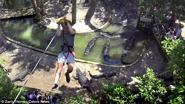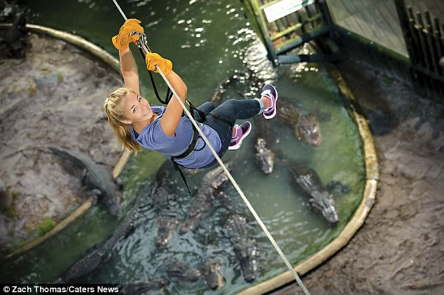 Бихте ли увиснали над яма с крокодили? Ферма за алигатори във Флорида предлага зип линия с въздушна разходка над страховитите влечуги.
