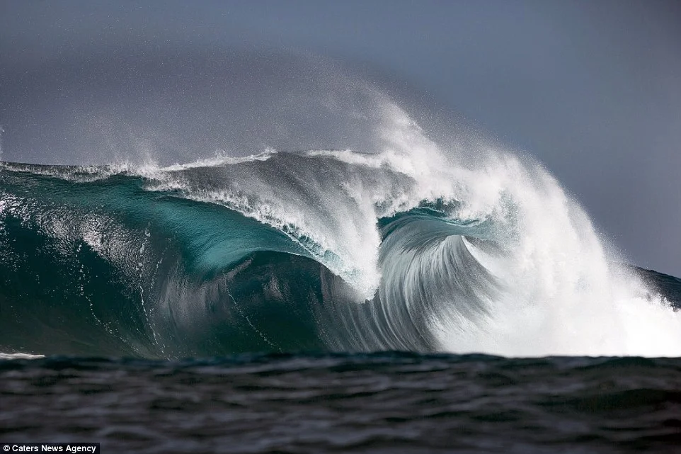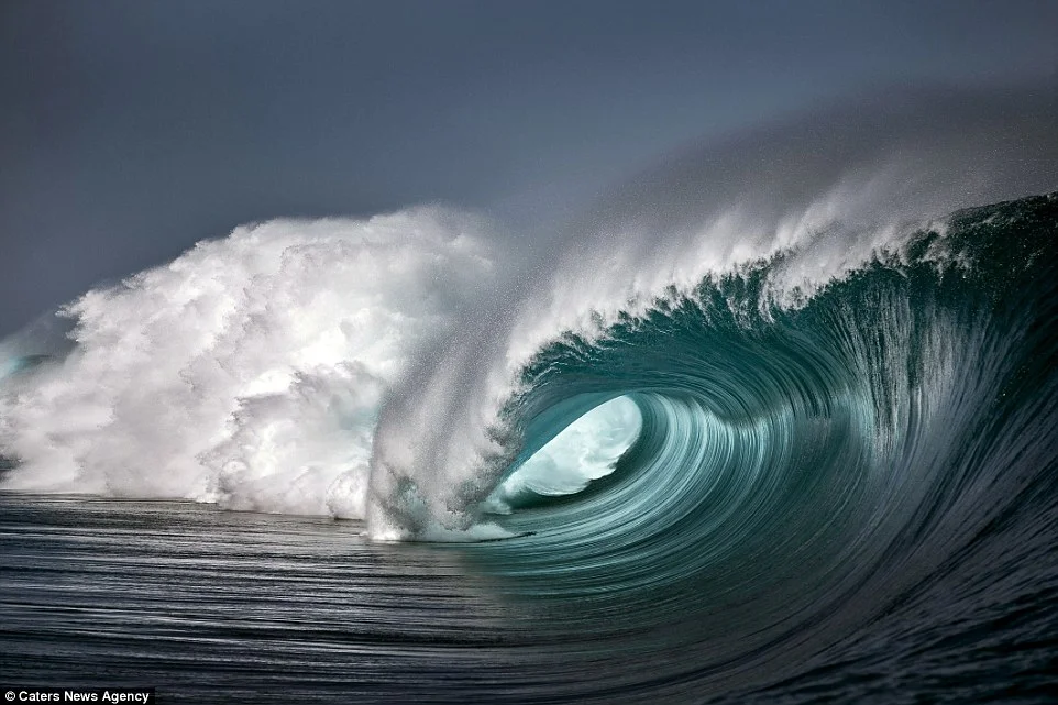 Сърфистът Бен Тъуорд се спусна по гигантски вълни в едно от най-опасните места за практикуване на този спорт, за да направи уникални снимки. Кадрите са от югозападния бряг на Таити във Френска Полинезия.