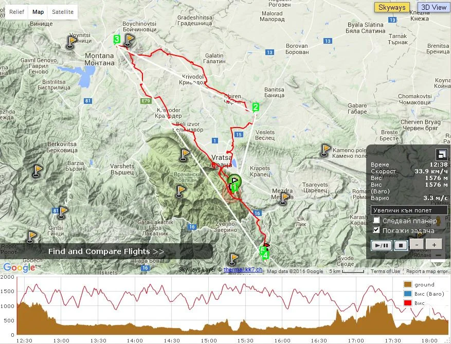 Въоръжен с тези предварителни очаквания избрах да се опитаме да направим интересен полет от старта на Околчица, разположен над Враца.