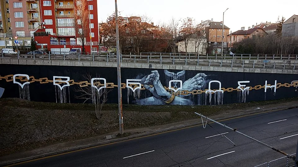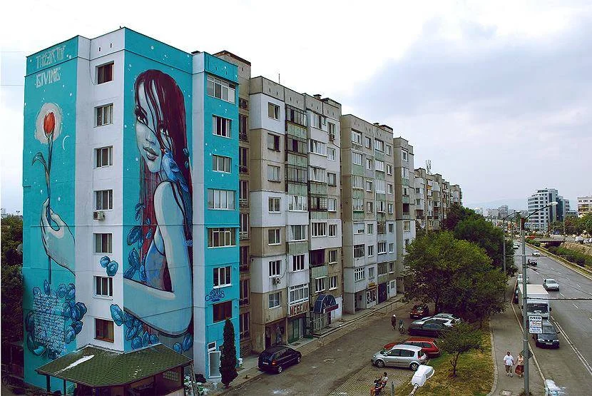 Един от тези добродетели е изкуството да даваме. Точно така – The Art of Giving, е озаглавен друг нашумял графит на Nasimo, този път – на калкан в „Сухата река“. На него е изобразено момиче, подаряващо цвете, и е изписано болезнено красивото стихотворение на Валери Петров „Хвърчащите хора“.