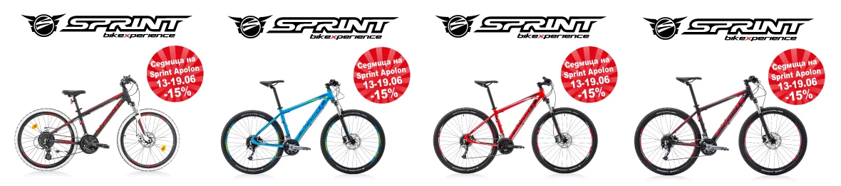 В периода от 13-и до 19-и юни в магазин Maxbike велосипедите от серията Sprint Apolon ще бъдат намалени с 15%. Промоцията важи за всички колела от серията – от най-малките 24” до все по-популярните 27,5“ и 29“ велосипеди.