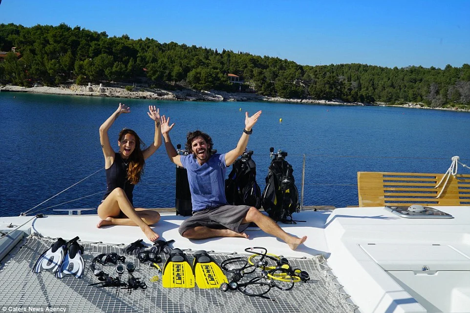 Освен че изследват местните култури и кухни, Сара и Ренато са запалени сърфисти и гмуркачи. Заедно преминават през бури и огромни вълни.