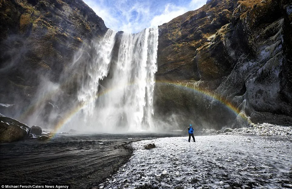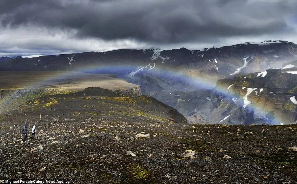 Германският фотограф Михаел Фърш запечата дъгат на фона на мистични водопади и зашеметяващи планински пейзажи в Исландия.