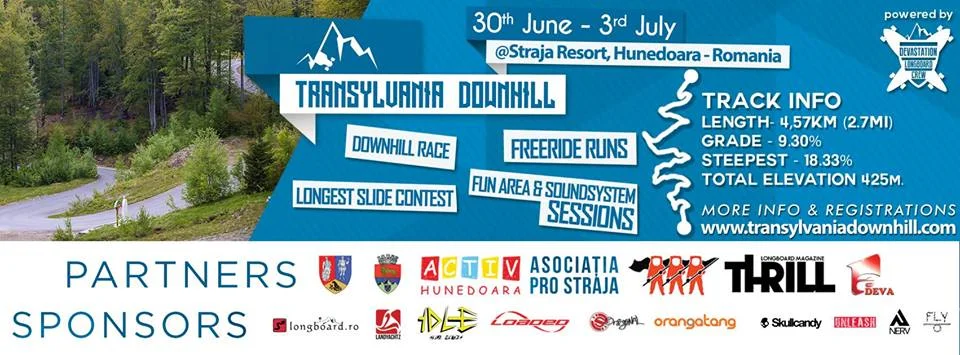 От 30-и юни до 3-ти юли в Стража, окръг Хунедоара, Румъния ще се проведе лонгборд състезанието TRANSYLVANIA DOWNHILL.