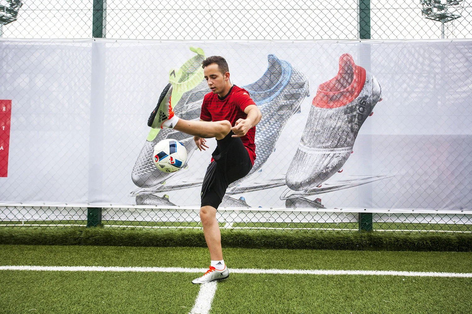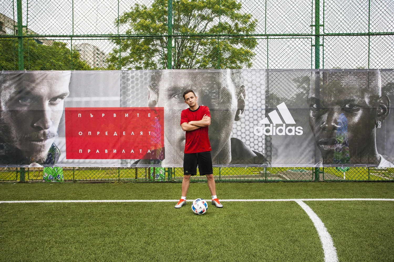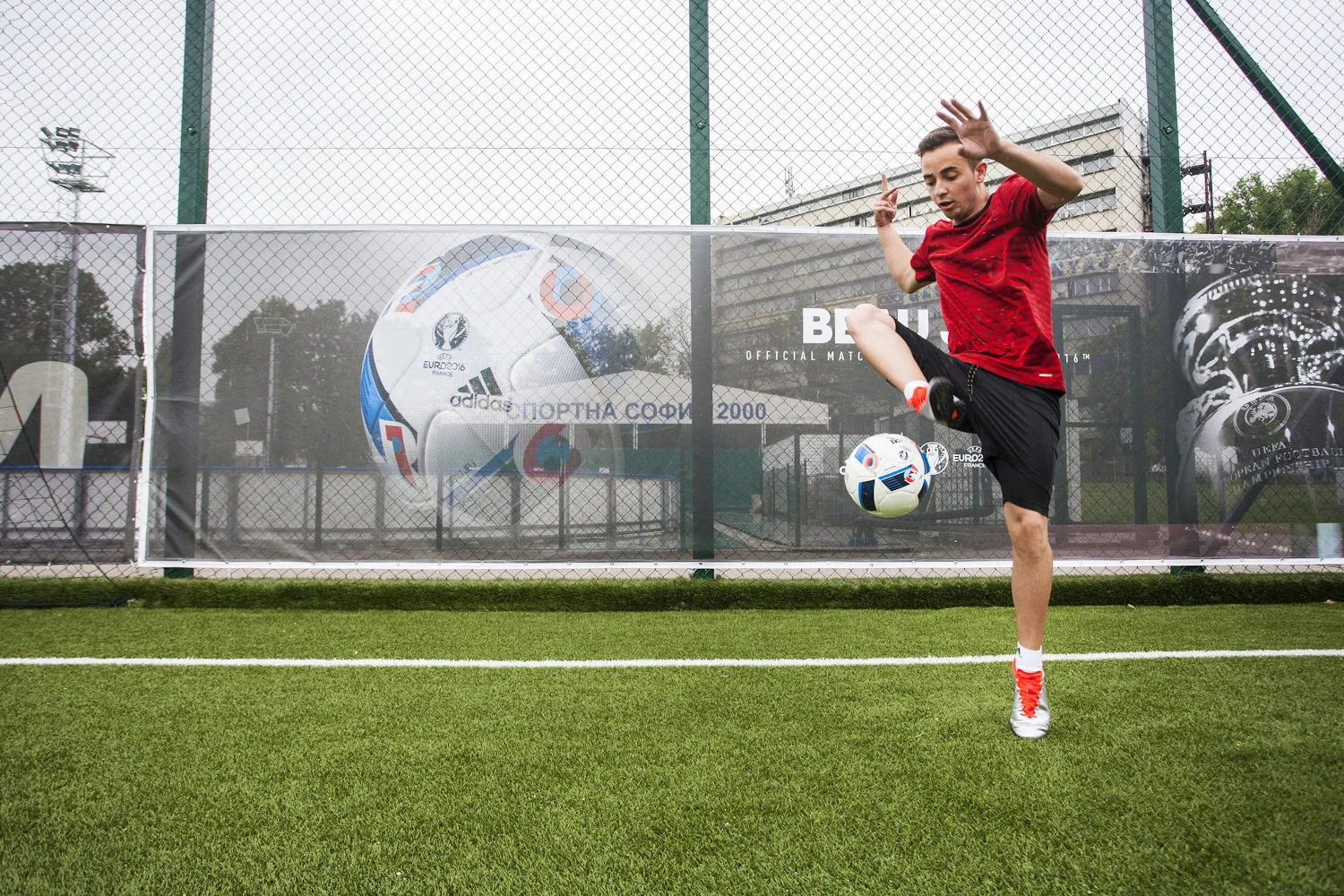 Футболистите още не бяха разиграли кълбото на Евро-терена, а топката на adidas попадна в ръцете, краката и върху главата на българския фрийстайлър Енис Тодоров.