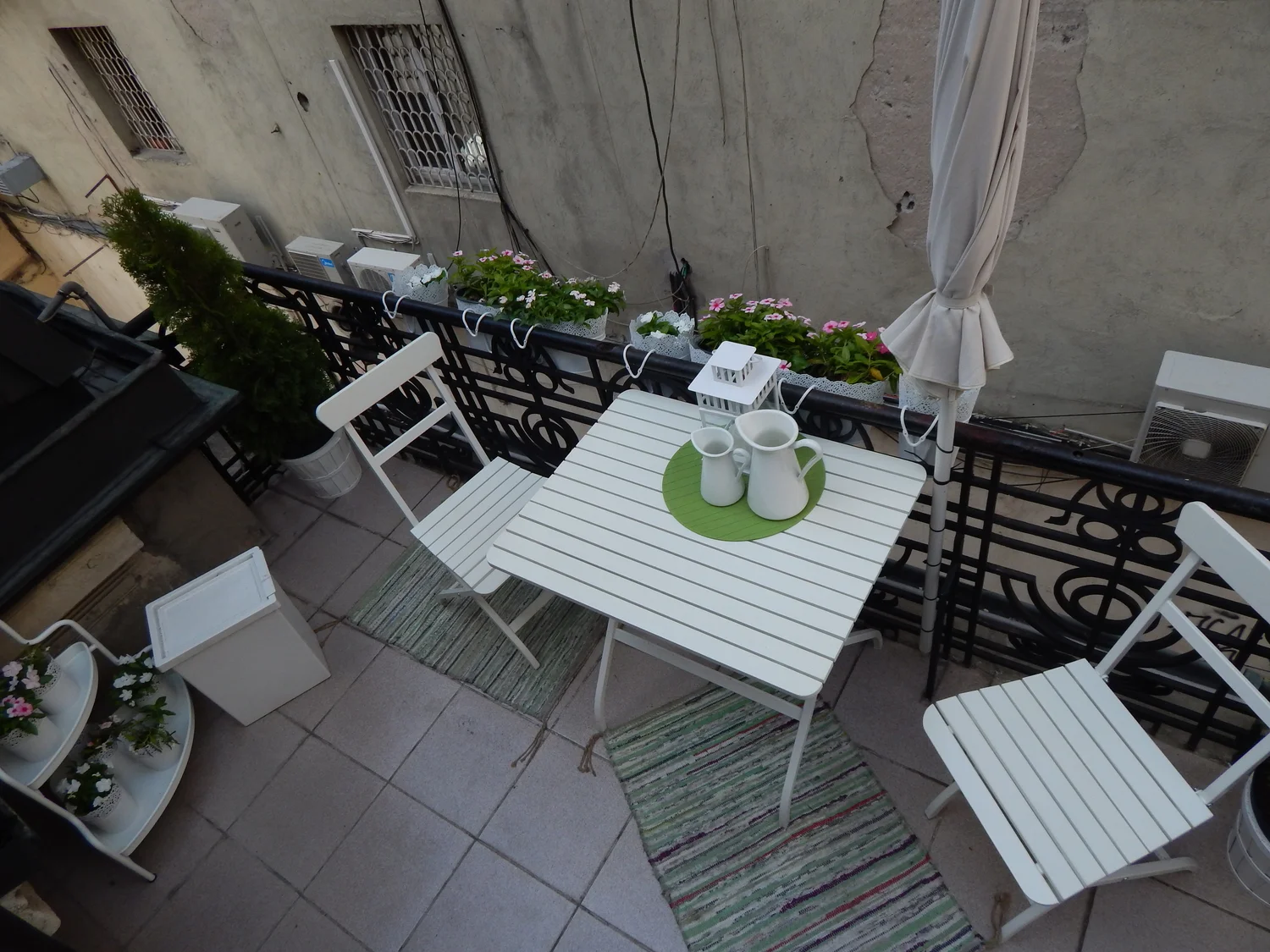 Среща с приятели на Списанието си уговорихме ние, именно на територията на романтичния балкон. Кокетната бяла масичка, зеленината и хубавата сянка ни накараха да забравим колко бързо тече времето в града и ни припомниха, че понякога освен екстремни, всички заслужаваме и лежерни удоволствия.