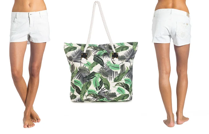 Към тениските и шортите прибавяме и плажни чанти, които са идеални, за да поберат всичко, което ни е необходимо близо до морето. Те са удобни и създадени в същата тропическа схема както дрехите и са идеалното комфортно допълнение към летния ни аутфит. Шапката с периферия пък, е възможно най-доброто решение, когато прекосяваме „пустини“ без сламени чадърчета в близост.