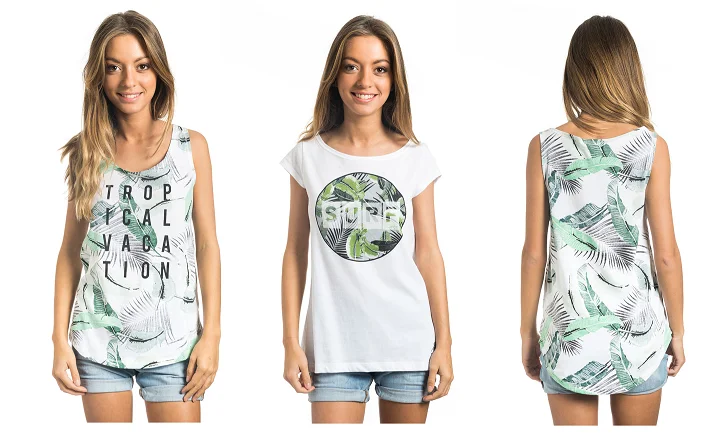 Летните серии на Rip Curl – Palm Island и Tropical Tank, са създадени именно, за да ни бъде удобно в горещините. Светлите цветове са идеални за часовете под парещото слънце, а щампите и надписите с палми, и закачливи цитати не ни оставят на мира само и само да се отправим към някой плажен палмов (ако може) оазис.