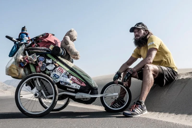 Джейми оставил бюрото зад гърба си и направил първата стъпка към мечтаното приключение – и не се спрял, докато не изминал целия път от Ванкувър до Буенос Айрес. С бягане. Бутайки целия си багаж в количка пред себе си. Отнема му година и половина (от които 367 дни бягане) да прекоси голяма част от двете Америки, правейки средно по 45 км на ден.