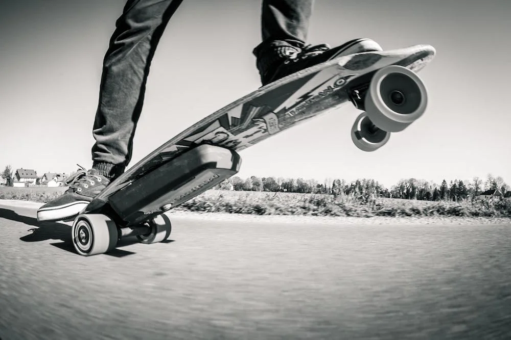Къде сме сега? Ами… достъп до летящи дъски нямаме. Имаме жесток прогрес на лонгборда като част от цялата скейт култура, а и като нов, алтернативен начин на движение. Все повече хора се качват на дъските. Логично се появиха и първите разработки за бордове с механично задвижване. Първо имаше някакви версии на маунтинбордове с бензинови двигатели. Звучаха и се движеха точно като бензинови резачки, а бяха и около 2 пъти по-тежки. После почнаха електрическите скейтове. Да, за онези уродливи дъсчици с прикрепени акумулатори към тях говорим. При тоталната липса на естетика и функционалност това, че издържаха едва по няколко зареждания, си идваше като жив бонус. Ще ги сложим в категория безинтересни и безсмислени играчки, заедно с всичките сегуей-и и тем подобни разработки на нашето време.