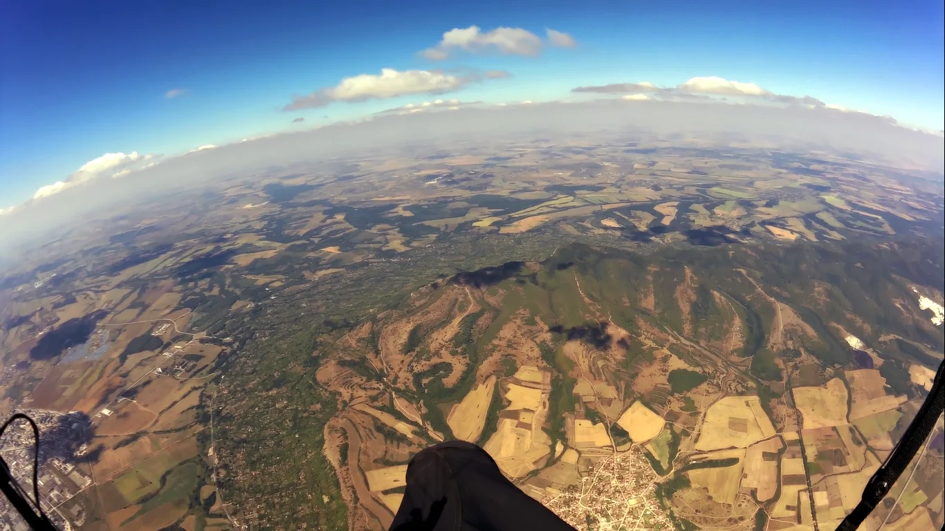 Вече съм 100 м под нивото на старта, на едва 900 м височина. По-голямата част от състезателите са високо, минават през старта и се насочват към първа точка. За мой късмет намерих силна термика от скалите и се изстрелях нагоре в стегнати кръгове с изкачващия се въздух. Виждам как първите крила – Даниел Димов, Адриан Атанасов, Алексей Макаров, са минали през първата точка и се насочват обратно към планината към 2-ра точка. Давам си време, термиката е добра, и бързо стигам височината, която ми се струва достатъчна за продължаване по маршрута. Има много крила наоколо и свежи облаци, които показват, че има условия. Реших, че няма смисъл да се набирам максимално и се оказах прав – стигането до точката и връщането до Челопек, става без много загуба на височина.