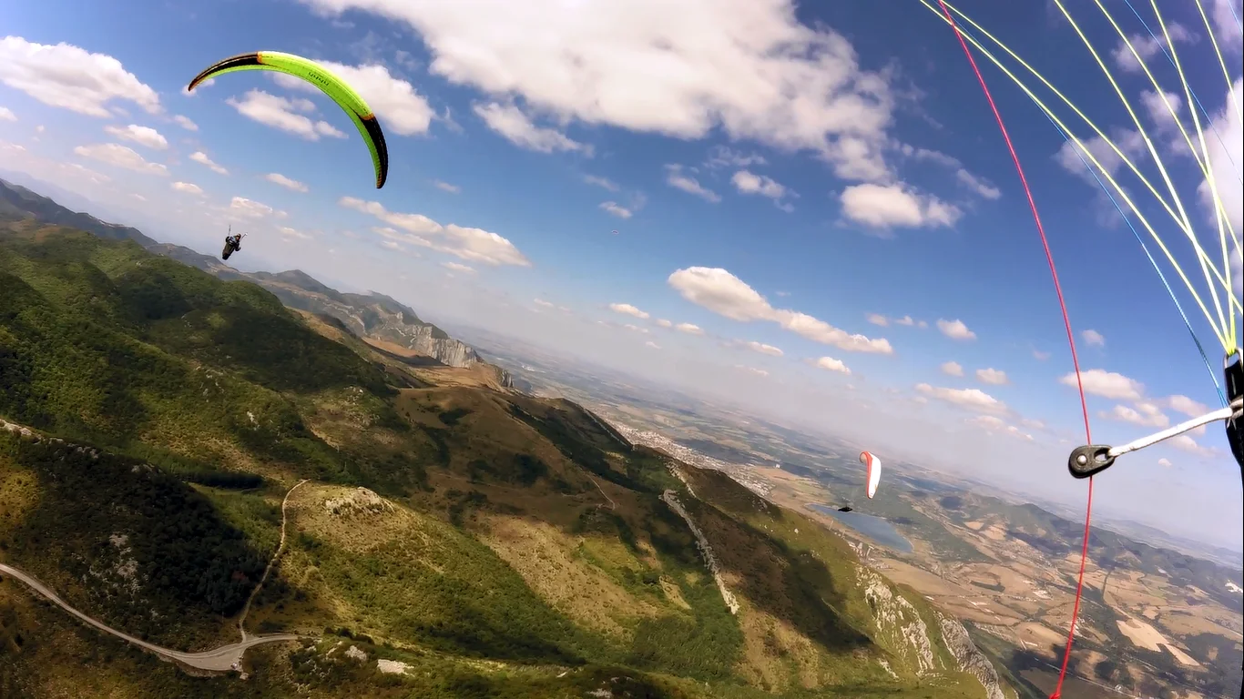 Крилата пред и около мен ми помагат да избирам по-добра линия на движение, в случая, минавам през Врацата и се движа по северният край на билото. Скоро групата, с която летя, взе да застига откъсналите се пилоти пред нас.