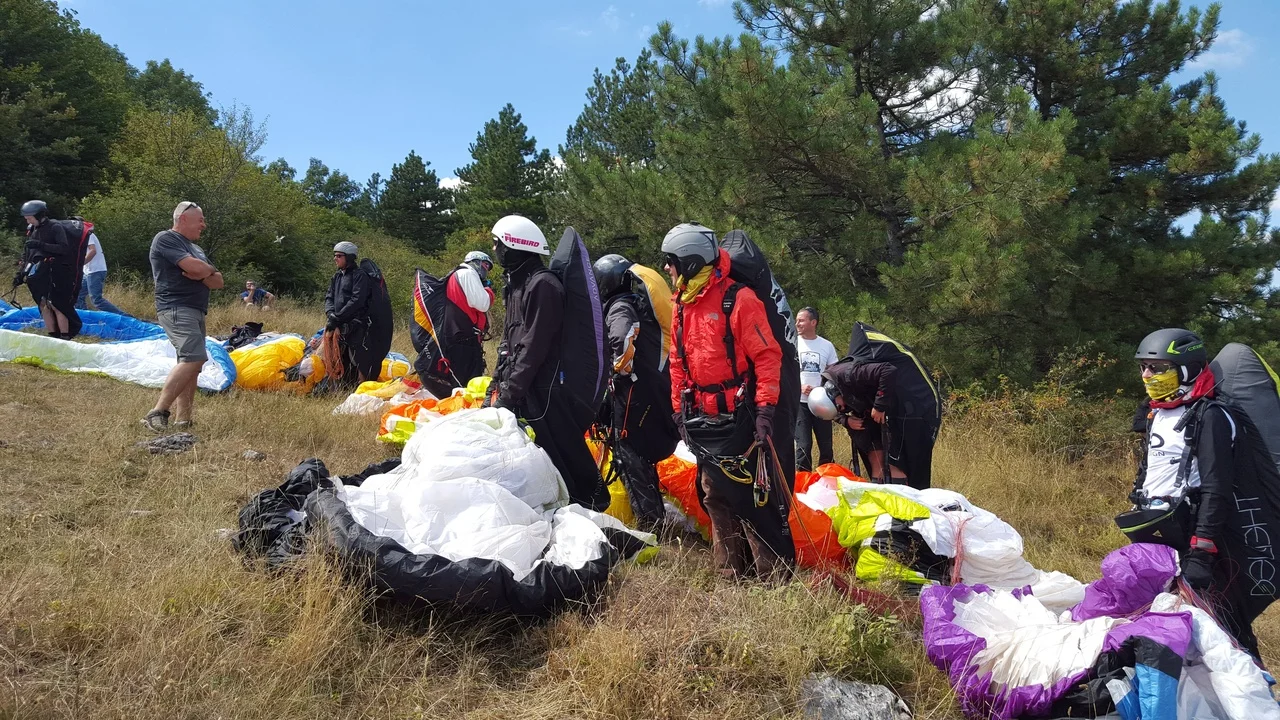 След брифинга за безопасност и метеоусловията, се качихме отново на автобусите и се насочихме към старта над Златица. Въпреки орографските облаци на изток, които изглеждаха като вълна, която прелива над планинското било, имахме надежда, че северният вятър няма да пробие много рано и ще успеем да излетим с тръгващите нагоре по склона пориви на вятъра от добре огрения от слънцето терен пред старта.