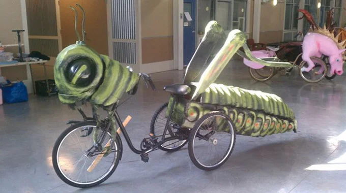 Катрина Брийс, художник и еко активист от Ню Орлиънс, прекарва дните си като прави изящни велосипедни скулптури за партита, паради и фестивали.