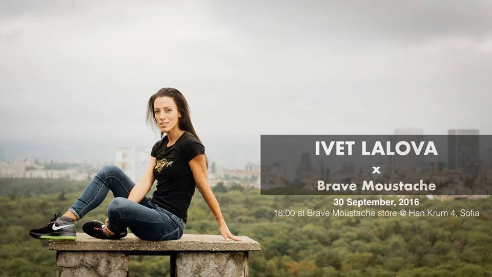 Brave Moustache ни канят в петък, 30-и септември на събитие, което ще разкаже повече за съвместната работа с Ивет Лалова и ще представи новата колекция. По време на него, всеки ще може да се сдобие с тениска или потник (които са в супер ограничени количества – само 150 броя) и да се запознае с Ивет, а първите 20 души, които закупят продукт от колекцията, ще получат подарък – златен постер от колекцията, разписан именно от бегачката.