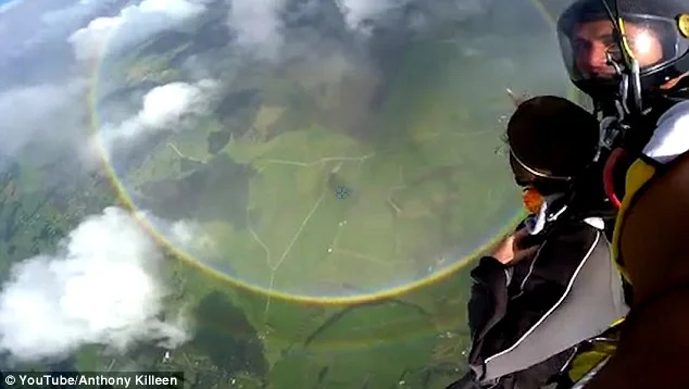 Да видиш 360-градусова двойна дъга, докато скачаш с парашут! Уникалното преживяване се случва на британеца Антъни Килин в Нова Зеландия.