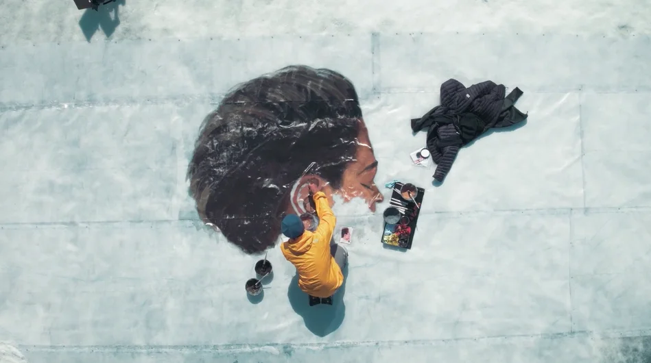 Обединява ги един единствен човек – Хула, известен още като Шон Йоро. Хавайският художник рисува мащабни портрети на жени, чиито страни са застрашени от глобалното затопляне върху… топящи се айсберги.