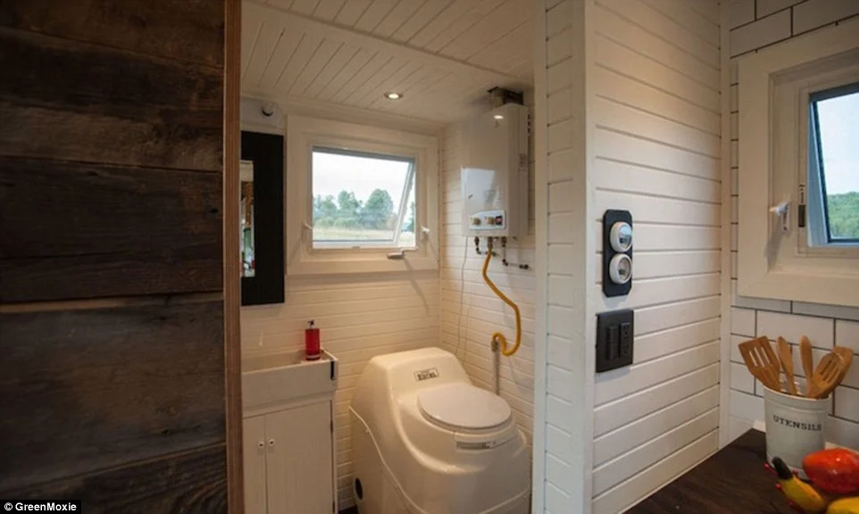 Прозорците на банята пък предлагат гледка към природата навън. Вътре има компактна душ кабина и мивка.