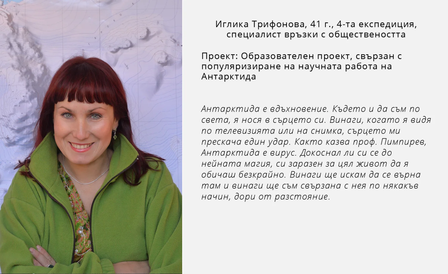 Учим за Ледения континент Антарктида в пети клас. Помним, че е бял, покрит целият с лед, че на него се разхождат пингвини и че помещава Южния полюс. Друго? Хората, имали щастието да посетят Антарктида, я описват като вълшебно място, друг свят, неописуема с думи красота, но в учебника ни (а често и в новините) тя е представяна със сухи географски и политически понятия – едно леденостудено и недостижимо, голямо парче земя. Жалко е да сме лишени от красивото вдъхновение, съпътстващо срещата с уникалния континент, особено при факта, че страната ни има свой постоянен дом в полярния регион от 1993 г. насам. (Антарктида е название за континента и заобикалящите го води и острови.)