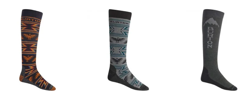 Освен термобельо, за да бъдем максимално защитени от студа, от Burton предлагат и различни модели чорапи. Те са изработени от бързосъхнещи материали и са с допълнително подсилени зони при пръстите и петите. Материята в долната част е обработена така, че да не задържа неприятни миризми, а областта на глезена е с добавена еластичност за повече комфорт при носене. Чорапите са ушити с комфортен ластик, който приляга плътно и държи чорапът вдигнат.
