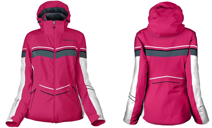 За да бъдат напълно водоустойчиви двата модела якета и панталонът за ски, от Diel Sport са се погрижили да подлепят всички шевове. Както споменахме и в публикацията за мъжката екипировка, една дреха с неподлепени шевове няма как да бъде напълно водоустойчива заради малките дупчици, които шевната машина оставя в плата. Diel Sport покриват шевовете на екипировката си с нагрята полиуретанова лента. Освен, че подлепят всички шевове обаче, от марката дори не използват такива за сглобяване на дрехите в определени зони. Така критични части от дрехата като структурните шевове, джобовете и ципове се сглобяват посредством нанасяне на залепващи филми, осигуряващи издръжливост на опън.