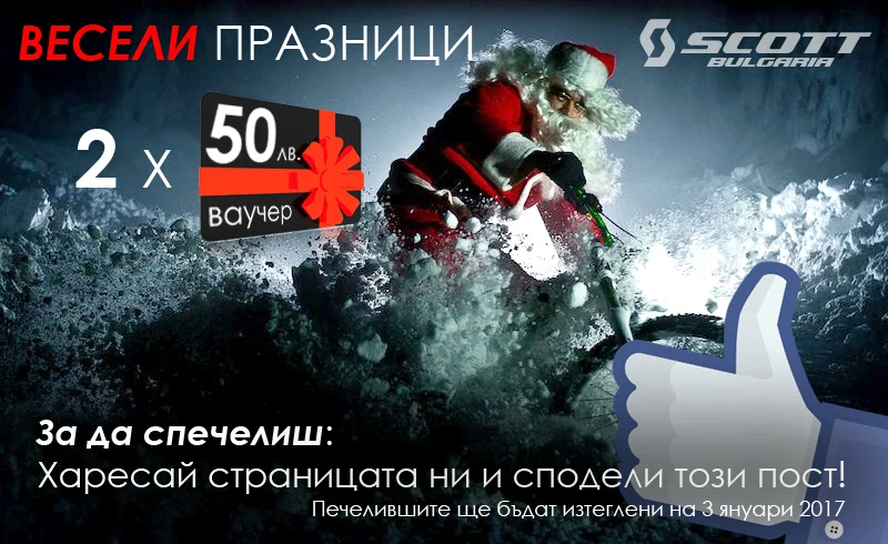 Освен това всеки от вас може да си спечели и един от двата ваучера на стойност 50 лв., които от Scott Bulgaria ще подарят. Какво трябва да направите? Единствено, да харесате страницата на Scott Bulgaria във фейсбук и да споделите поста с играта. След това остава само да си пожелаете да бъдете изтеглени в томболата на 3-и януари.