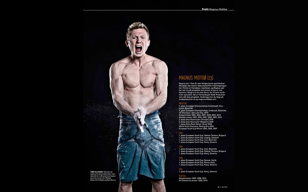 Магнус Митбу е гордостта на Норвегия в спортното катерене и също представител на тази група атлети в спорта, които залагат главно на физическата подготовка – човекът прави набирания на един пръст. Скандинавците може да са необичайни, но пък всеки би се влюбил в родните им места, както ни убеждава и следващото видео.