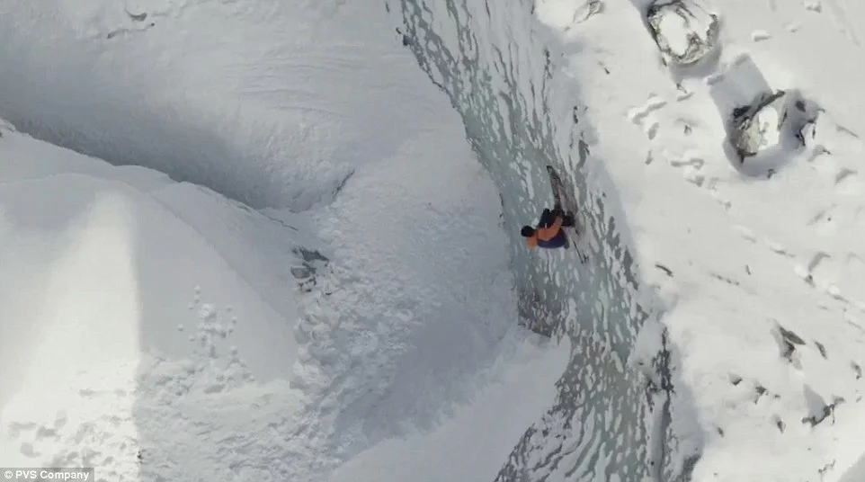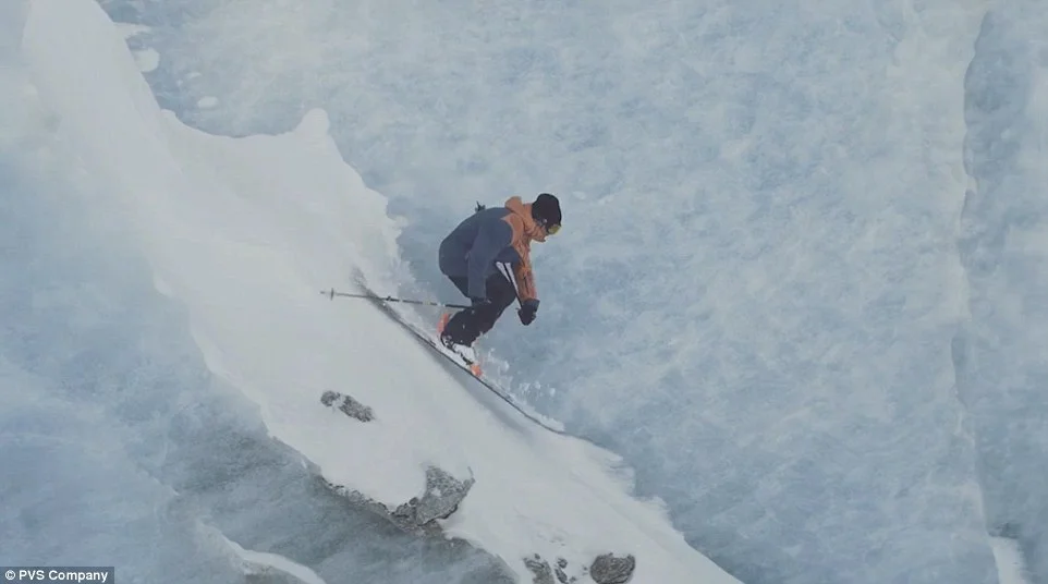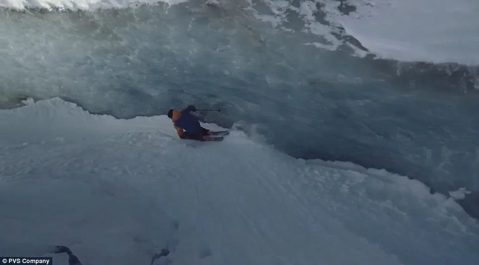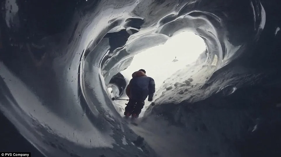 Вместо само да се спуска със ските над ледника, той открива цепнатини и тунели, в които да се плъзне.