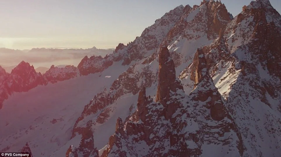 Страховитите кадри разкриват назъбените планински склонове на живописния район, който Фавре описва като своя „заден двор“.