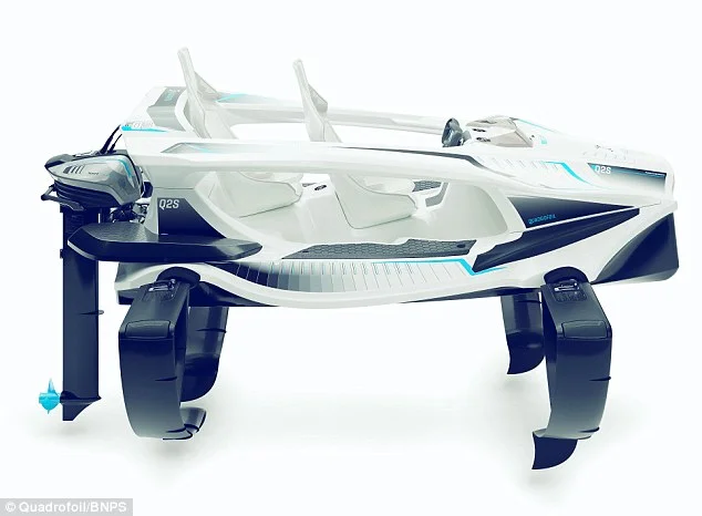 Quadrofoil Q2S е двуместна лодка на подводни криле, задвижвана от електрически извънбордов двигател.