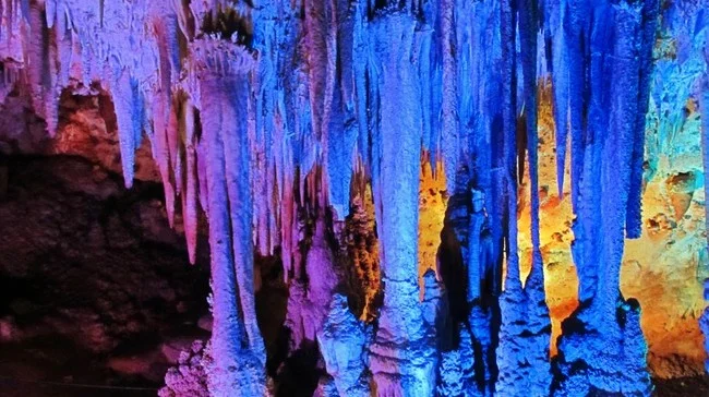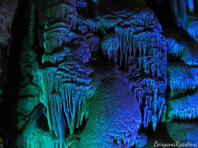 Ефектното осветление подсилва естествените природни цветове – синьо, жълто, зелено, лилаво, розово. Пещерата е като истински приказен декор.
