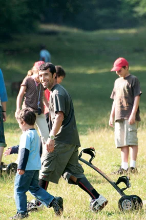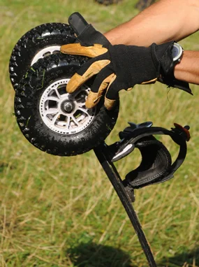 Ако искаш да започнеш, но не знаеш откъде и как точно – най-лесно е с момчетата от board.bg, единствените, които предлагат обучение по маунтинборд. Мястото е Борисовата градина, за начинаещи – малко над езерото с лилиите, а по-надолу, в байк парка, всеки желаещ може да усети тръпката от карането на бабуни и скокове. Карвинг техниката може да бъде приложена перфектно на княжевската писта, но по принцип с маунтинборд можеш да се спускаш навсякъде, без ограничения, целогодишно. Едно е сигурно – теренът е твърд, неравен и изпълнен с изненади, затова, за да не бъде първото качване на дъската и последно, е много важно да не се правят никакви компромиси с екипировката. Неслучайно от board.bg работят с шведската фирма РОС, която напълно отговоря на изискванията за безопасност и предпазва в най-голяма степен. Протекцията се състои от наколенки с кори, гащи с протектори на бедрата и опашката, ризница с протектор за гръб, протектори за рамената, гърдите, налакътници, накитници, ръкавици и задължително дълбока каска, пазеща врата. Както се казва, колкото повече, толкова по-спокойно и уверено – пълен напред. Бордовете са различни – от 85 см за деца до 100 см про-дъски с различна по конструкция ходова част – колелата се помпат и това е един от начините да се контролира скоростта. Има модели със спирачка, за кайт закрепването става със страпове – нагласете ги така, че да имате идеален контакт между ходилото и дъската. Стойката е като в сноуборда – колената са леко разтворени, тежестта е по средата на борда, тялото – изправено, управлението става с натиск пети – пръсти, съпроводен с изнасяне на тялото извън дъската. Спирането става със слайд приплъзване на задната част на борда около предния крак или изваждане на краката от страповете и скок.