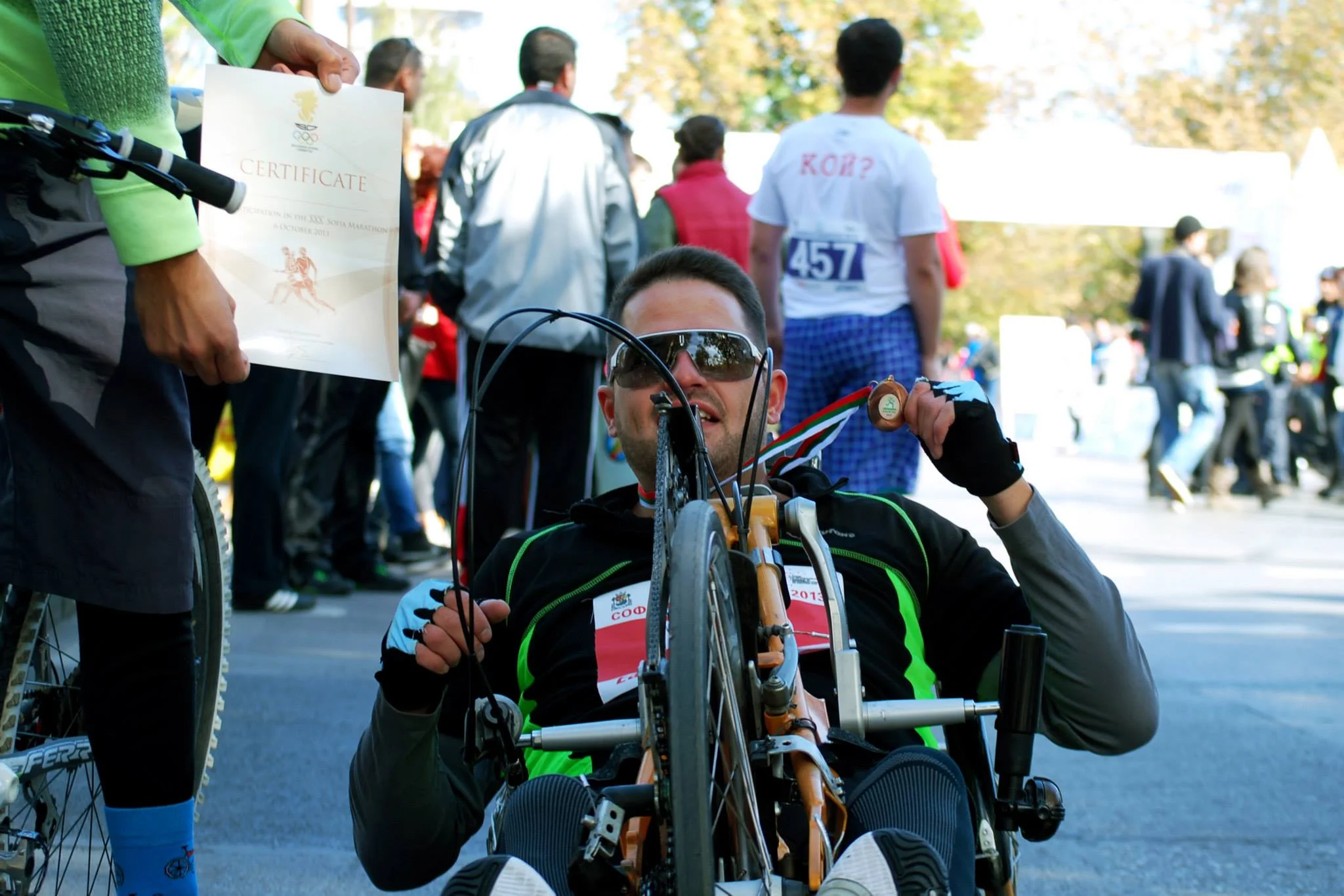 Щастливите, но и изстрадани стечения на обстоятелствата продължават, защото чрез свой приятел, Влади успява да купи стария хендбайк на един германец, спортист, със същото ниво на травма и със същото телосложение. Т.е. това колело все едно било направено за Влади. На всичкото отгоре, с него предишният му притежател е спечелил олимпийска титла.