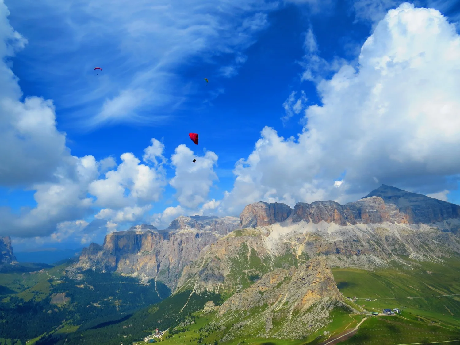 Доломитите са едно от най-величествените места в Европа, погледнати от въздуха. Удоволствието да си над тези зъбери с парапланер е незабравимо. За да полетиш там е добре да имаш опит и да използваш пролетта – март, април, май, или есента – септември, началото на октомври, когато условията са сравнително спокойни и може да се лети дълго време. През лятото във въздуха след 11 часа може да бъде страховито, поради голямата турболенция.