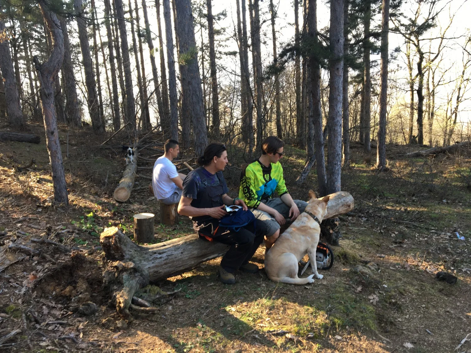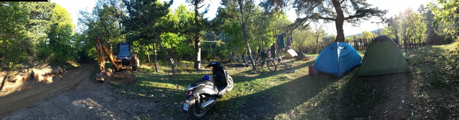 За да се движи багера добре и да не изоставаме с графика, имаше няколко човека пред него, които разчистваха пътя от дърветата и храстите. Атмосферата винаги е приповдигната. Разбира се, че си имаме и трудните моменти (като в дните когато сме само 1-2 човека и работа е прекалено много), но гората винаги се грижи нашето настроение да е положително. Времето също беше невероятно, затова си опъвахме палатките в гората и оставахме през вечерта, за да пазим багера, а и да се насладим на природата.